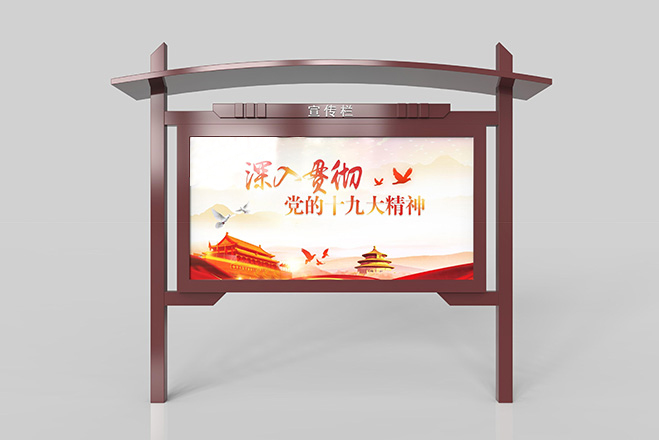 宣傳欄是一種VI應(yīng)用,是組織或企業(yè)單位等進(jìn)行自我宣傳的有效手段,常被應(yīng)用于街道,工廠(chǎng)等公共場(chǎng)所;一般采用不銹鋼為框架,鋼化玻璃或者耐力板為面板,鋁合金為頂棚,面板可以打開(kāi)更換宣傳畫(huà)面。現(xiàn)如今,宣傳欄廣泛應(yīng)用于學(xué)校、小區(qū)、會(huì)議館、展廳等各個(gè)場(chǎng)地。